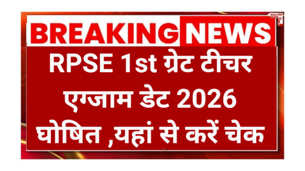 RPSE 1ST Grade Teacher Exam Date 2026 राजस्थान लोक सेवा आयोग (RPSC) ने स्कूल व्याख्याता (1st Grade Teacher) भर्ती परीक्षा 2026 के लिए कमर कस ली है। राजस्थान के शिक्षा विभाग में राजपत्रित अधिकारी बनने का सपना देख रहे अभ्यर्थियों के लिए यह एक स्वर्णिम अवसर है। हालिया अपडेट के अनुसार, इस भर्ती परीक्षा का आयोजन 31 मई 2026 से 16 जून 2026 के बीच राज्य के विभिन्न जिला मुख्यालयों पर किया जाएगा।